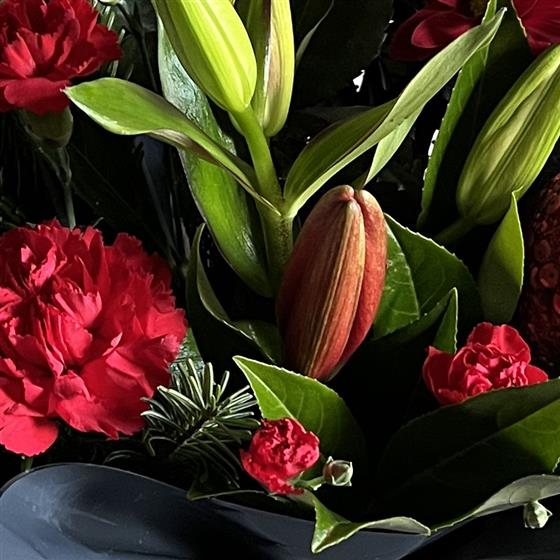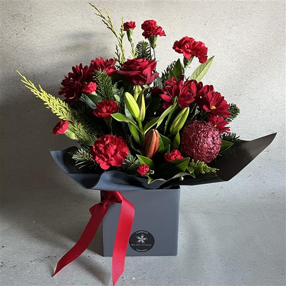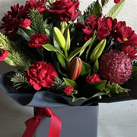 A smaller sized arrangement in foam full of seasonal flowers and foliage's, to fill loved ones full of festive cheer.
