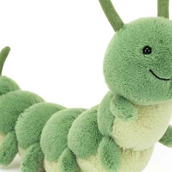 Standing tall in moss green fur, it’s Carys Caterpillar. With a pale green tummy and stitched segment detail, Carys has little legs, and suedette antennae. A big, stitched smile means Carys can brighten any day, and give hugs and hugs and hugs!