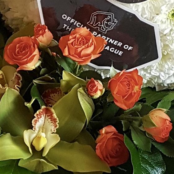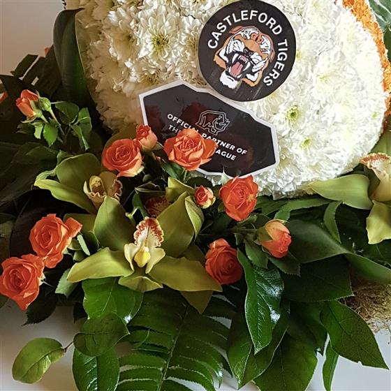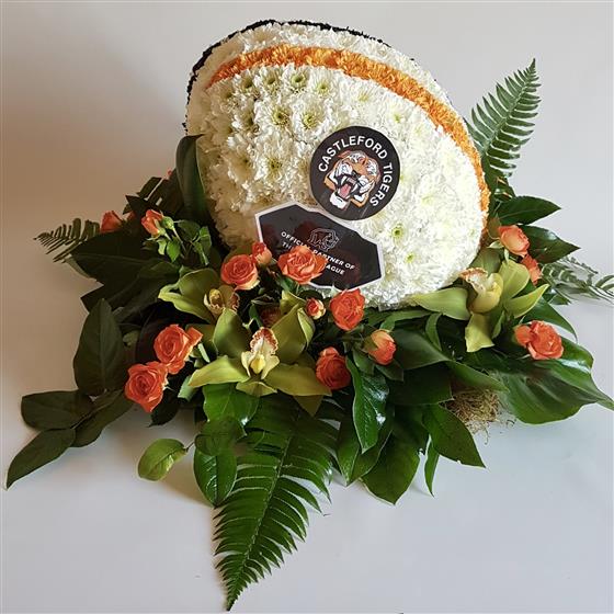 Perfect for a Rugby fan, we can personalise this floral rugby ball tribute in any colours and add a laminated sports club logo as a special finishing touch.