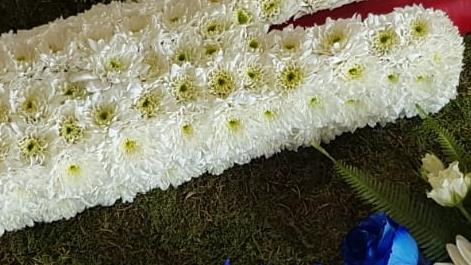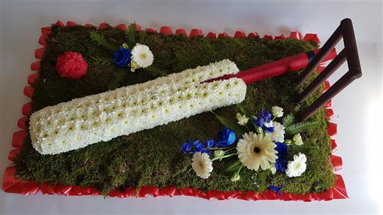 This lovely design is made on a board of Moss to resemble grass, with a flower 3D cricket bat and wooden Whickets.