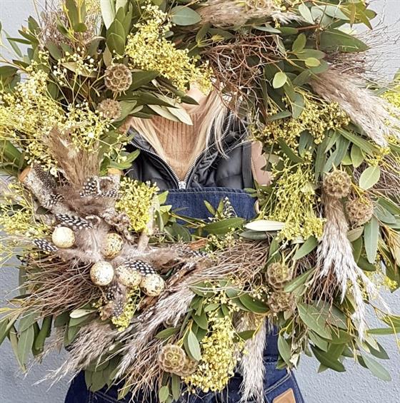 Rustic Easter Wreath filled with natural dried foliages, grasses and natural eggs to celebrate Easter.