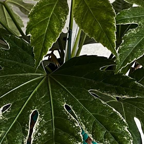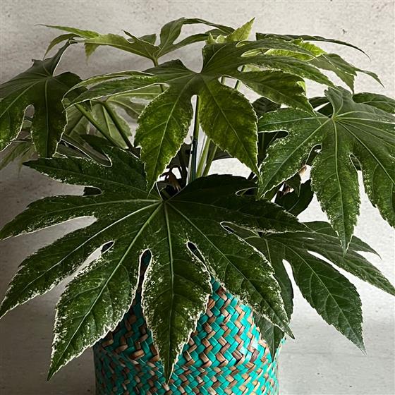 Fatsia polycarpa, also known as many-fruited aralia, is a species of evergreen shrub in the family Araliaceae. It is native to Taiwan and eastern Asia, specifically China and Korea. The plant can grow up to 4 meters tall and 2.5 meters wide, with large palmate leaves up to 30 cm long. It produces spherical clusters of cream or white flowers in winter, followed by black fruits in spring, this Fatsia are happy living inside and outside.