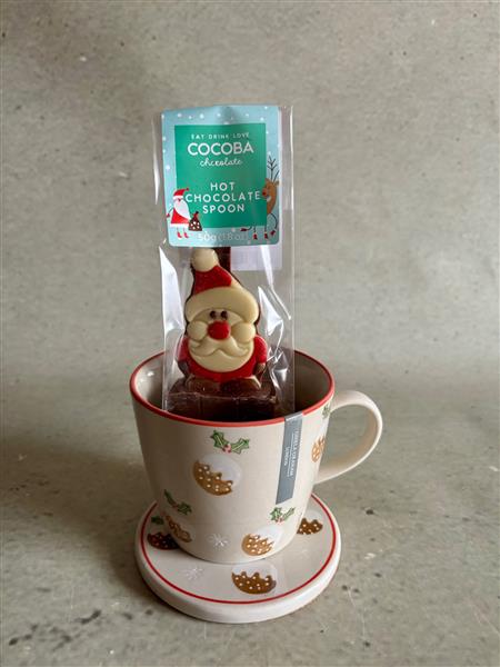 To make your hot chocolate ritual even more indulgent, each set includes a premium Cocoba milk-chocolate stirring spoon, crafted from the highest-quality chocolate and topped with a cheerful Santa or snowman character. Simply swirl the chocolate spoon into hot milk to create a rich, velvety drink that captures the magic of Christmas in every sip.