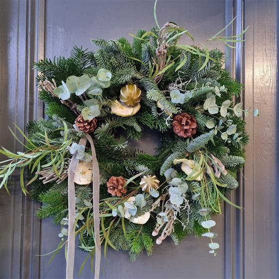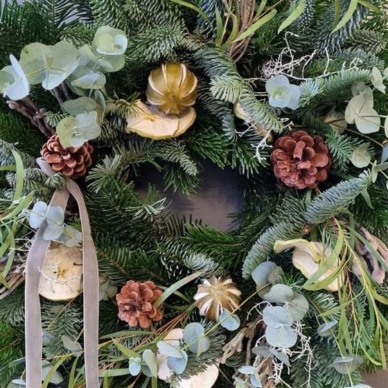 Grace your door this Christmas with a Nordic inspired moss-based wreath for a more sustainable and longer-lasting option.