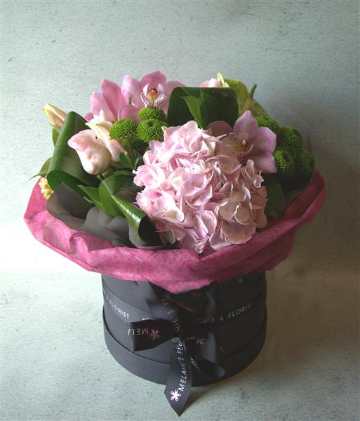 This beautiful hatbox arrangement will be arranged and delivered by your local florist Melanie's Florist in Castleford.