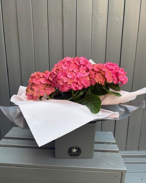Pink hydrangea plant with vibrant, long‑lasting flowers and rich green leaves. Ideal for gardens, patios, and pots, this easy‑care flowering shrub thrives in partial sun and brings beautiful summer colour year after year.