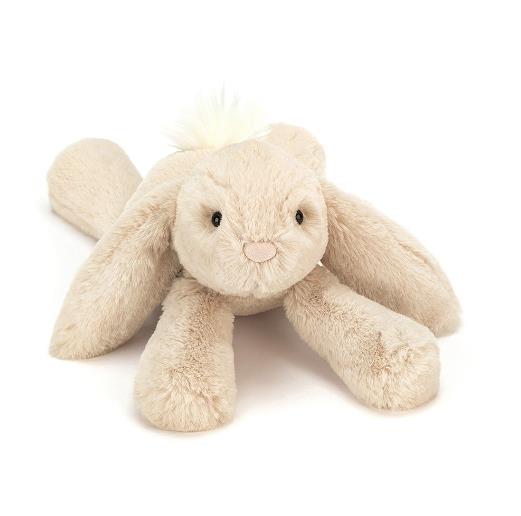 Smudge Rabbit is such a sleepy sweetie - always sprawling out, lazing on the bed or rug! Scrumptiously soft in oatmeal fur, this lop-eared lazer just captures the heart. An incredibly lopsy and loving companion, Smudge is a great gift for any bouncing baby. Bonnets and bobtails - we like it!