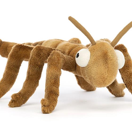 Stanley Stick Insect has a mischievous grin – he's getting ready to hide on a branch! This clever bug has mottled fur in ginger and nutmeg tones, along with bobbly stitched segments, marshmallow eyes, suedette feelers and dainty cloven toes.