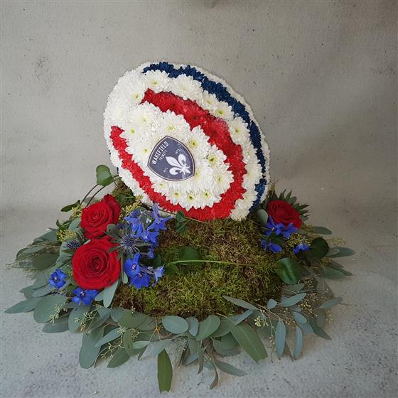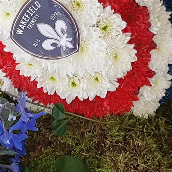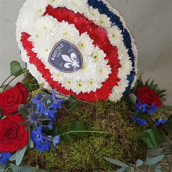 Perfect for a Rugby fan, we can personalise this floral rugby ball tribute in any colours and add a laminated sports club logo as a special finishing touch.